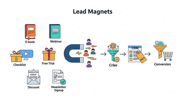 ● コンバージョン率のベンチマーク → リードマグネットの平均コンバージョン率は形式により5~20%。
