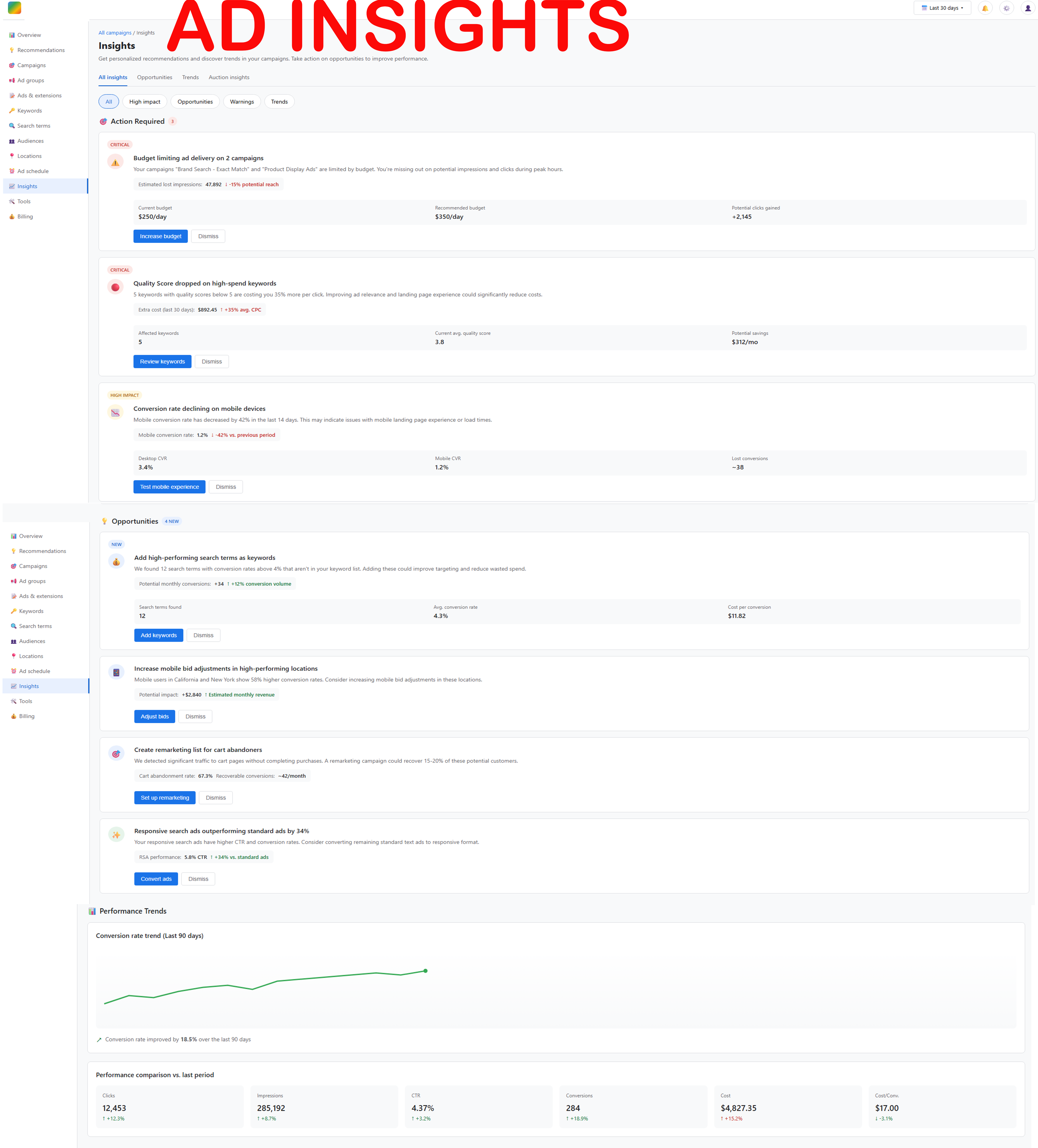Daily (5-10 minutes): Review Overview metrics for anomalies, check Insights for critical alerts, verify campaigns aren’t budget-limited, monitor conversion tracking functionality.