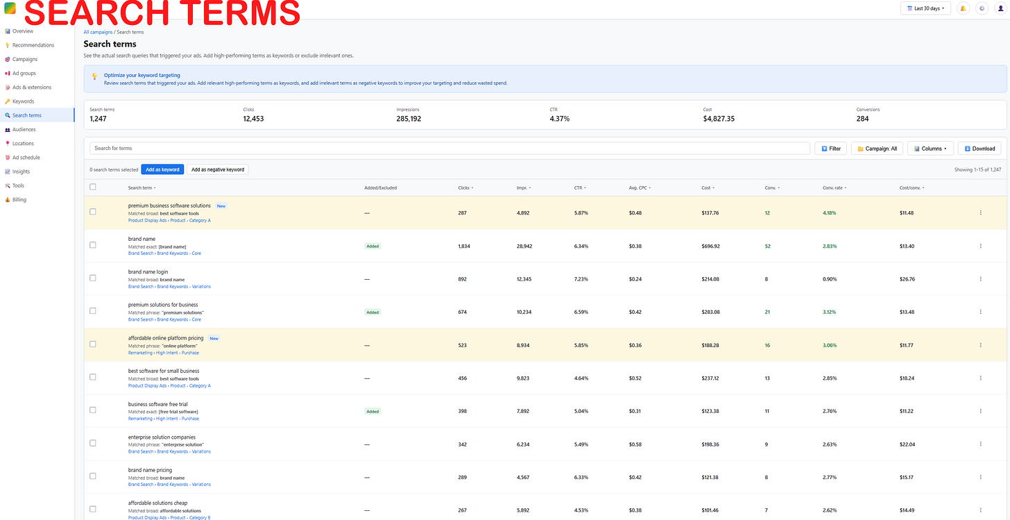 If you’re new to performance marketing, start simple: master the Overview metrics first, ensuring you understand clicks, impressions, cost, and conversions. Then progressively add complexity learn Campaigns, then Ad Groups, then Keywords building confidence at each level before adding the next dimension.
