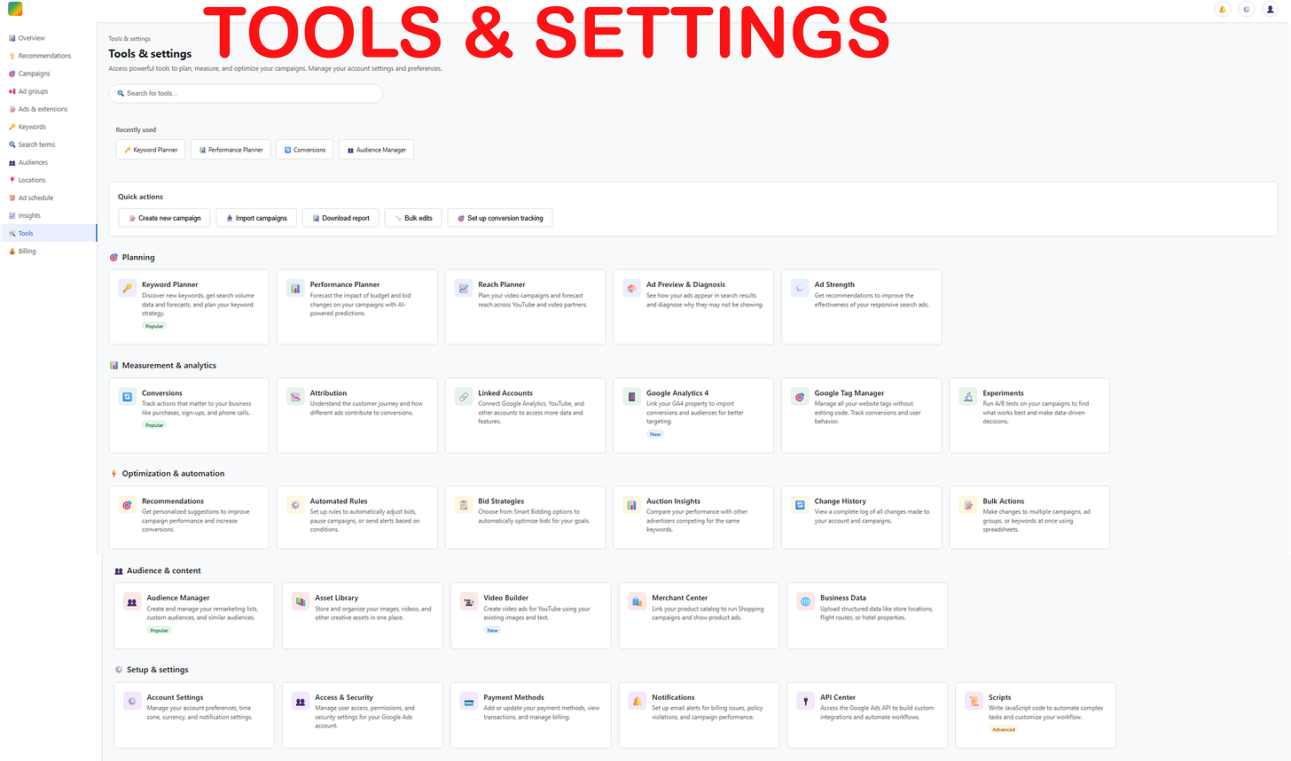 The Tools & Settings view represents the infrastructure layer that determines ceiling performance accounts with sophisticated tool usage can achieve results that accounts relying solely on manual optimization cannot match. Mastering this view means understanding which tools enable which capabilities, investing time in proper configuration upfront (conversion tracking, audience building, automation), and continuously leveraging tools to multiply human effectiveness. The accounts that dominate their markets aren’t just those with better tactics they’re those with superior infrastructure enabling capabilities competitors can’t replicate through manual effort alone.