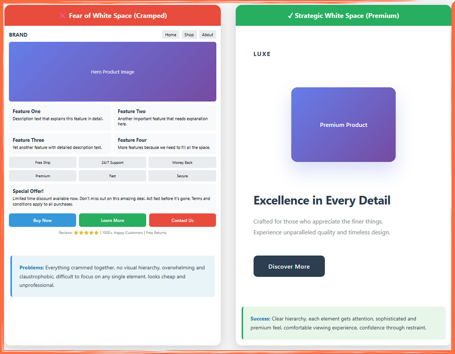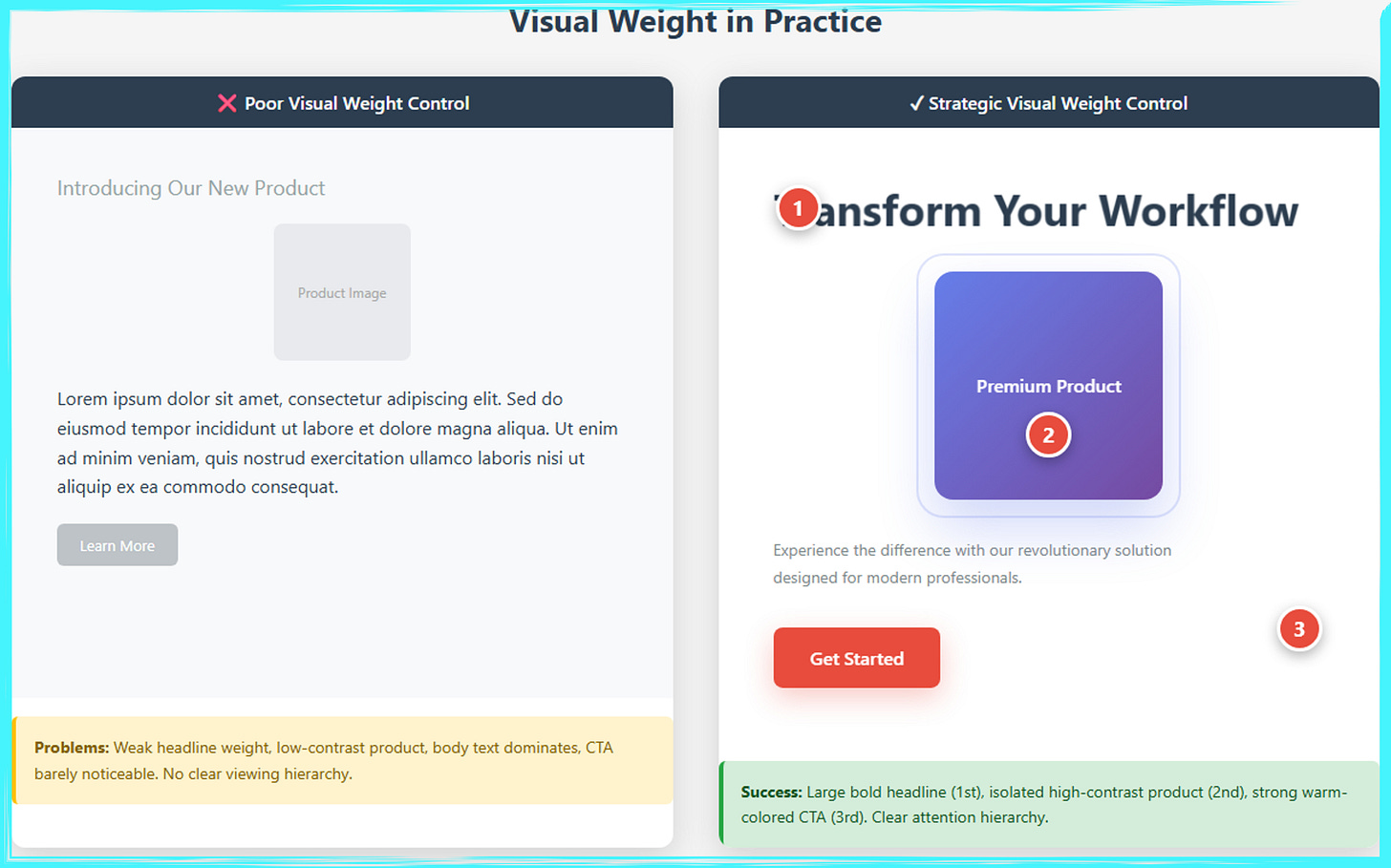 This visual comparison can serve as a perfect opening for your article or as a teaching tool to immediately show the dramatic difference between following design principles and ignoring them!