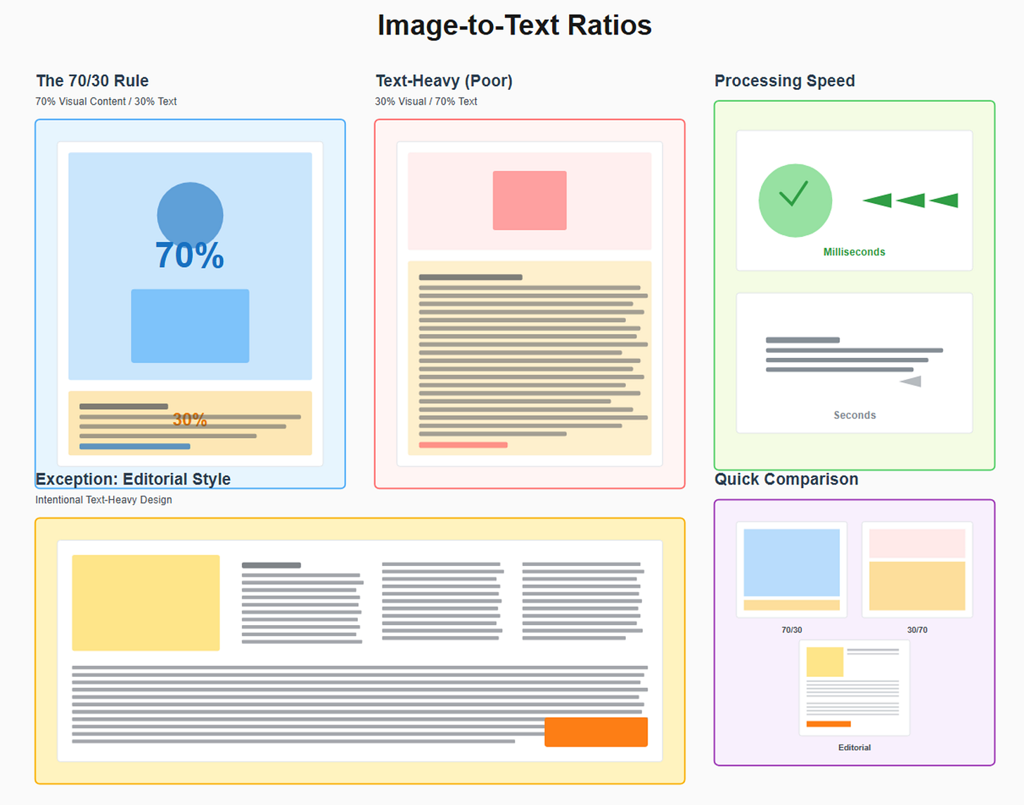 70/30 Ratio: 70% visual content, 30% text (generally)