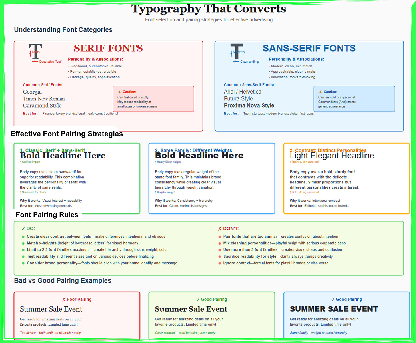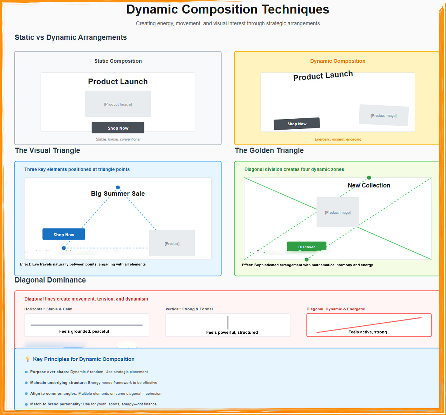 The most powerful insight is recognizing that these rules work together, not in isolation. The golden ratio creates pleasing proportions, but those proportions need the right colors (60-30-10), proper typography (Fibonacci sizing with clear hierarchy), appropriate spacing (8-point grid), and strategic composition (leading lines and visual flow) to create complete advertisements that guide viewers through messages and toward actions. No single principle guarantees success, but the systematic application of multiple complementary principles creates synergies where the whole becomes dramatically more effective than the sum of parts. The checklist in Part 8 helps ensure you’re leveraging these synergies rather than randomly applying isolated concepts.